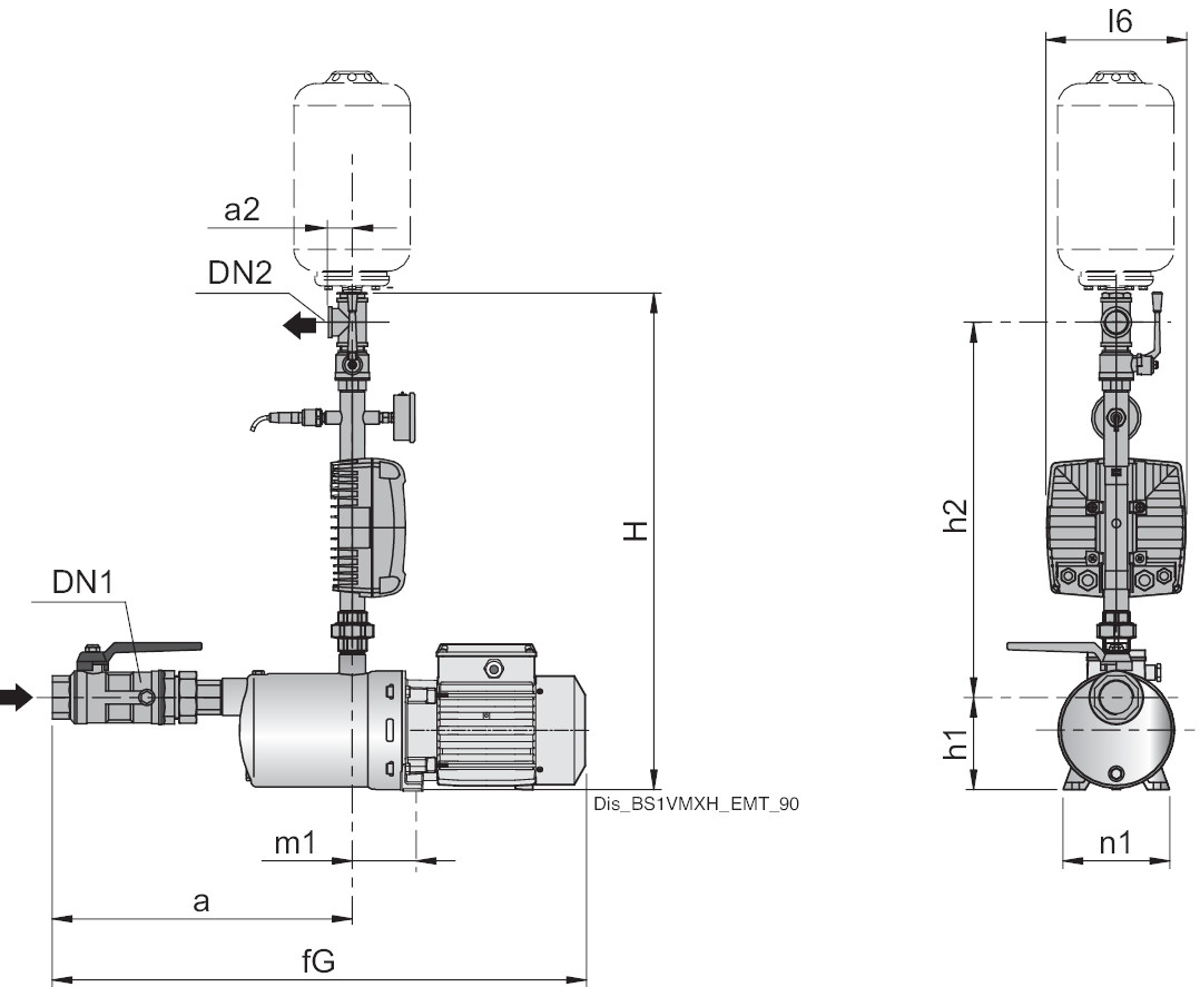 Pressione finale massima ammessa nel corpo pompa: 8 bar, 10 bar per MXH 20, 32, 48.