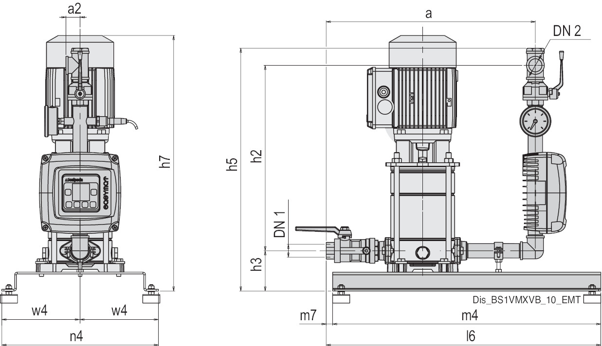 Pompe multistadio verticali monoblocco con bocche di aspirazione e mandata dello stesso diametro e disposte sullo stesso asse (in-line).Tutte le parti a contatto con il liquido, sono di acciaio inossidabile al cromo-nichel.