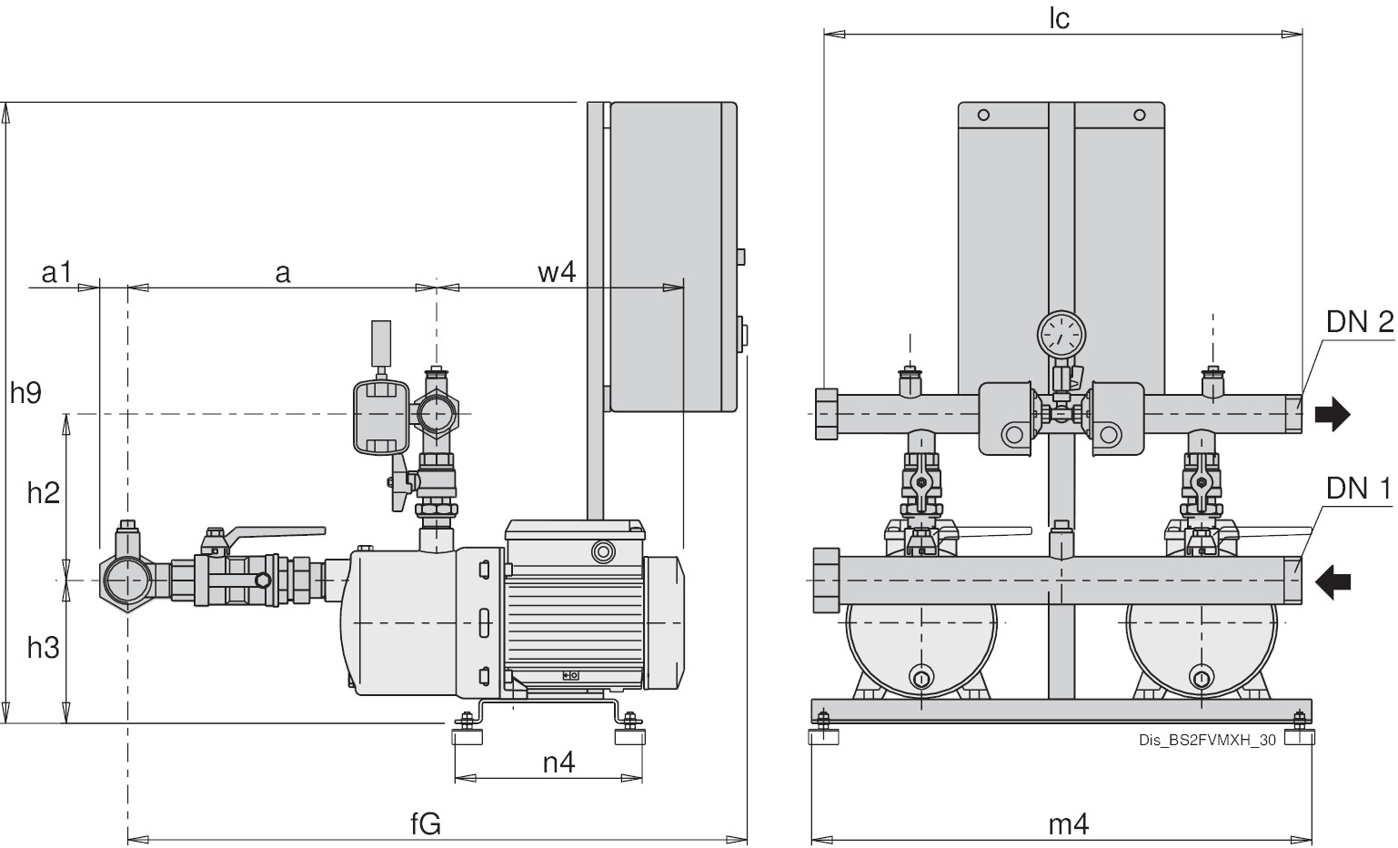 Pressione finale massima ammessa nel corpo pompa: 8 bar, 10 bar per MXH 20, 32, 48.