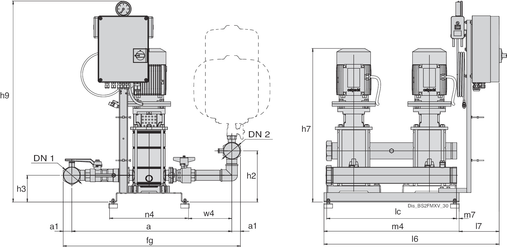 Pompe multistadio verticali con bocche di aspirazione e mandata dello stesso diametro e disposte sullo stesso asse (in-line).Bussole di guida resistenti alla corrosione e lubrificate dal liquido pompato.