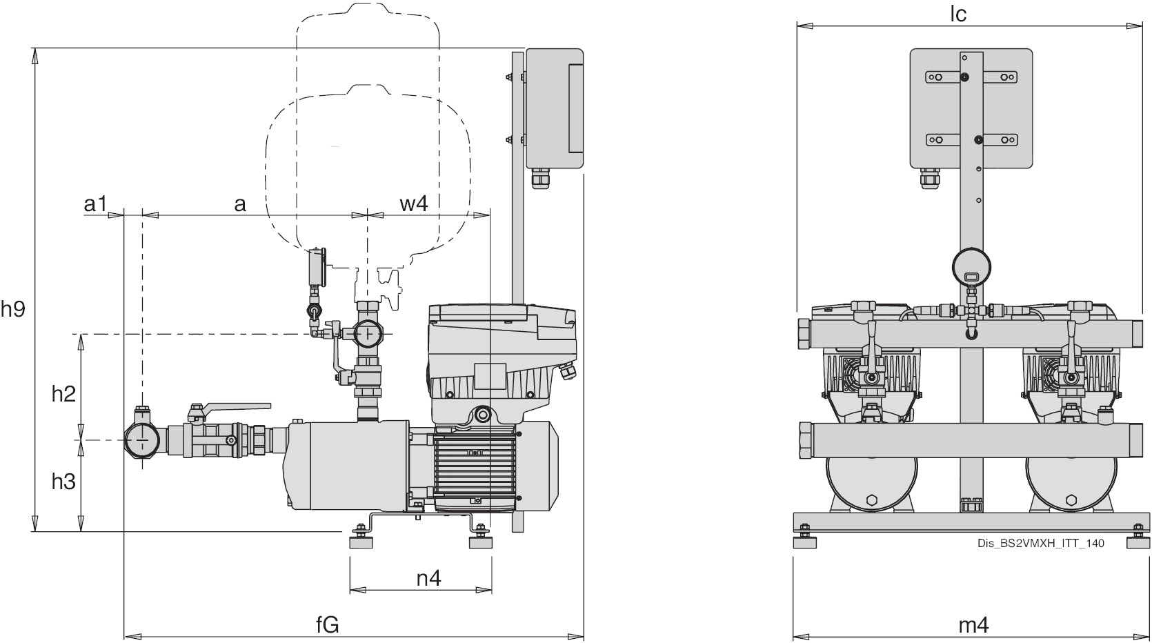 Pressione finale massima ammessa nel corpo pompa: 8 bar, 10 bar per MXH 20, 32, 48.
