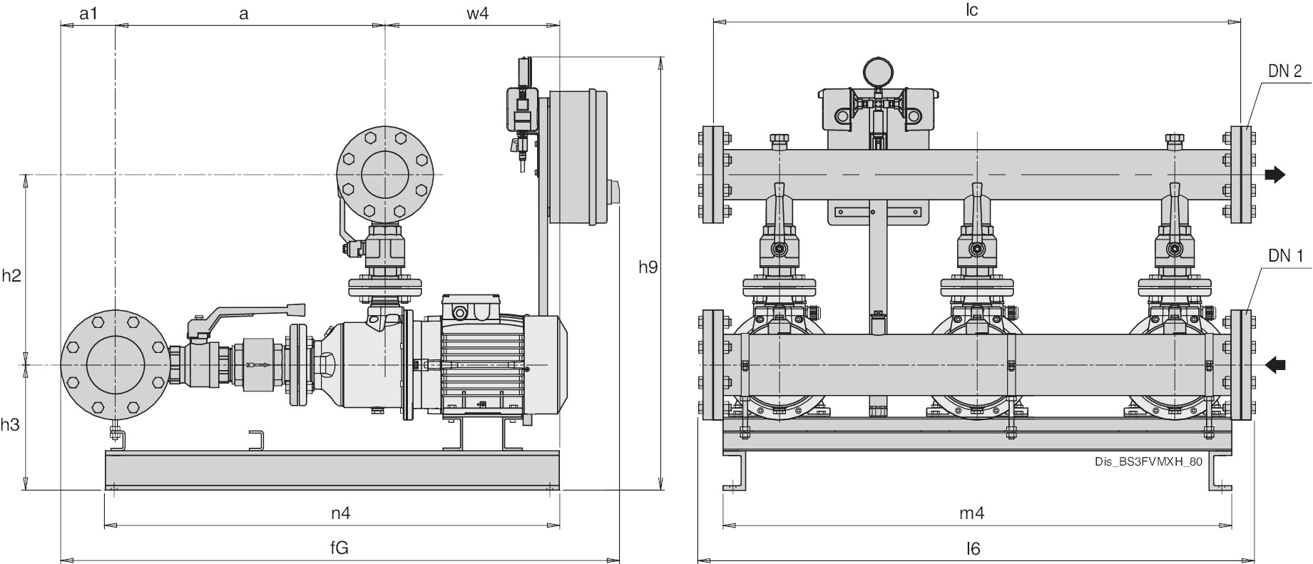 Pressione finale massima ammessa nel corpo pompa: 8 bar, 10 bar per MXH 20, 32, 48.