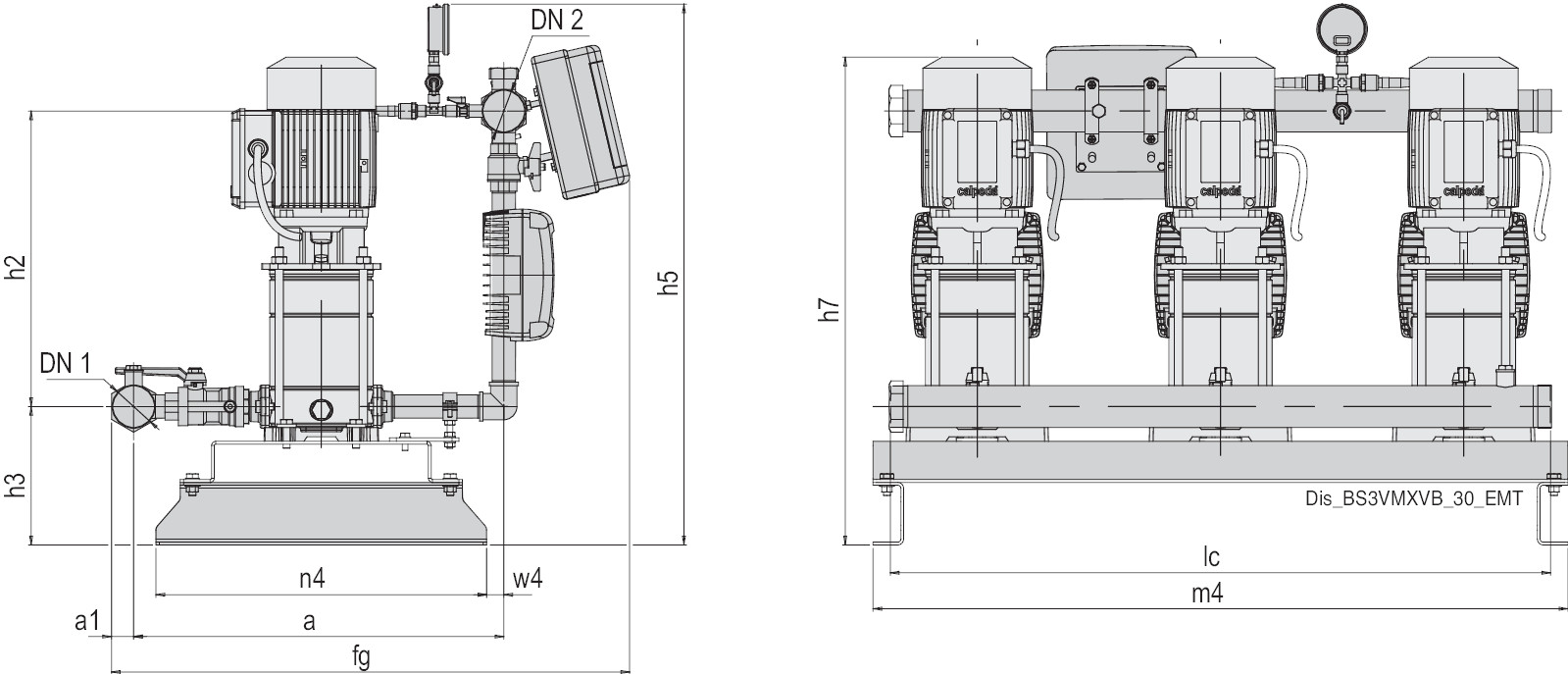 Pompe multistadio verticali monoblocco con bocche di aspirazione e mandata dello stesso diametro e disposte sullo stesso asse (in-line).Tutte le parti a contatto con il liquido, sono di acciaio inossidabile al cromo-nichel.