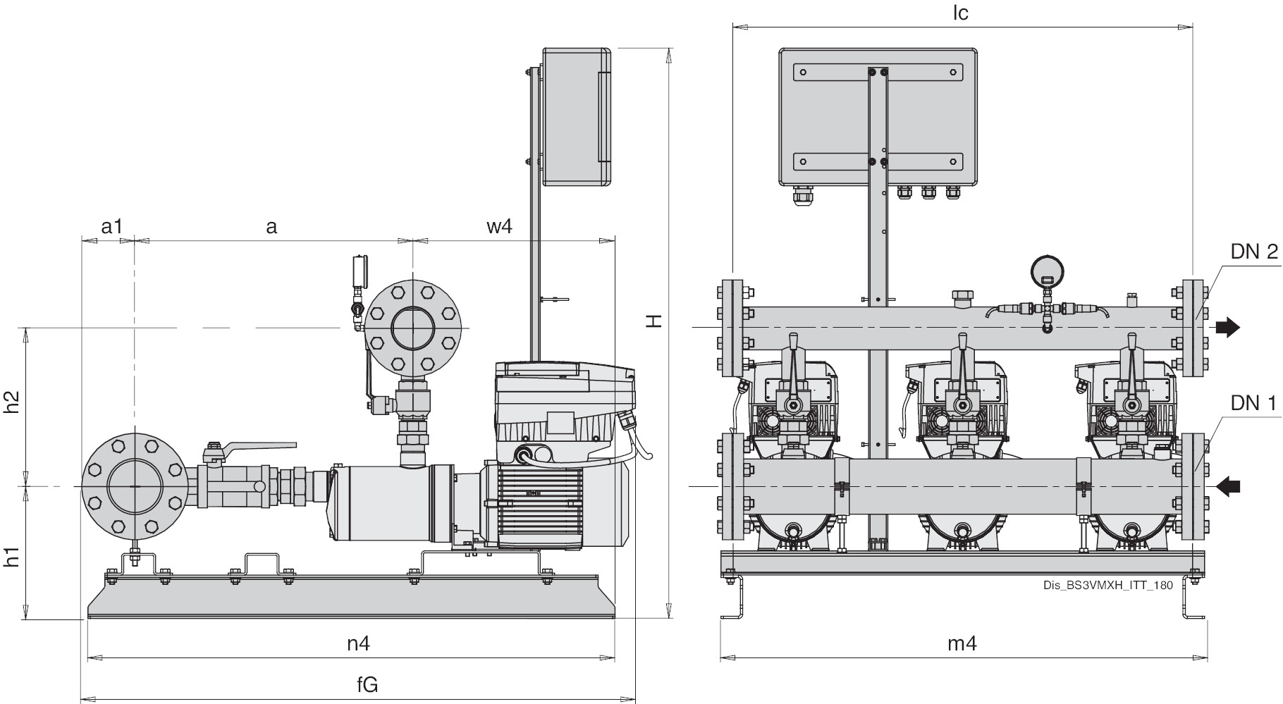 Pressione finale massima ammessa nel corpo pompa: 8 bar, 10 bar per MXH 20, 32, 48.