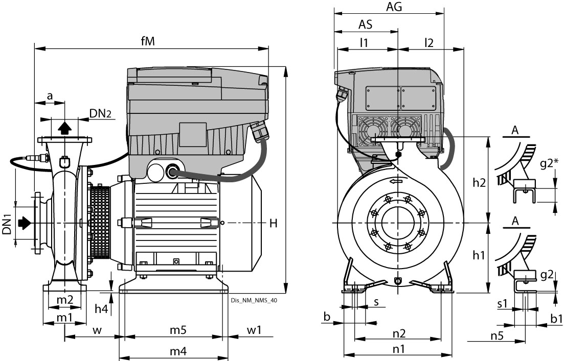 NM(S): versione con corpo pompa e raccordo in ghisa.