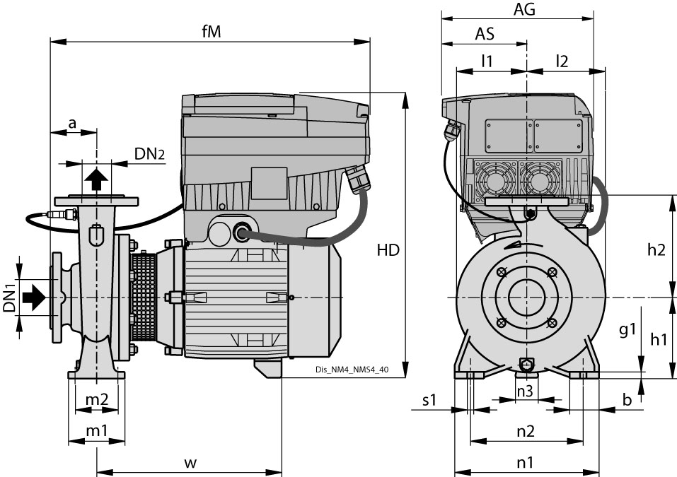 Pressione finale massima ammessa nel corpo pompa: 16 bar (10 bar per NM4 25/12,160,200, NM4 32/16,20; NM4 40/25; NM4 50/20,25, NM4 65/31, NM(S)4 100/250,315,400, NM(S)4 125/250,400, NMS4 150/400 e versione in bronzo).