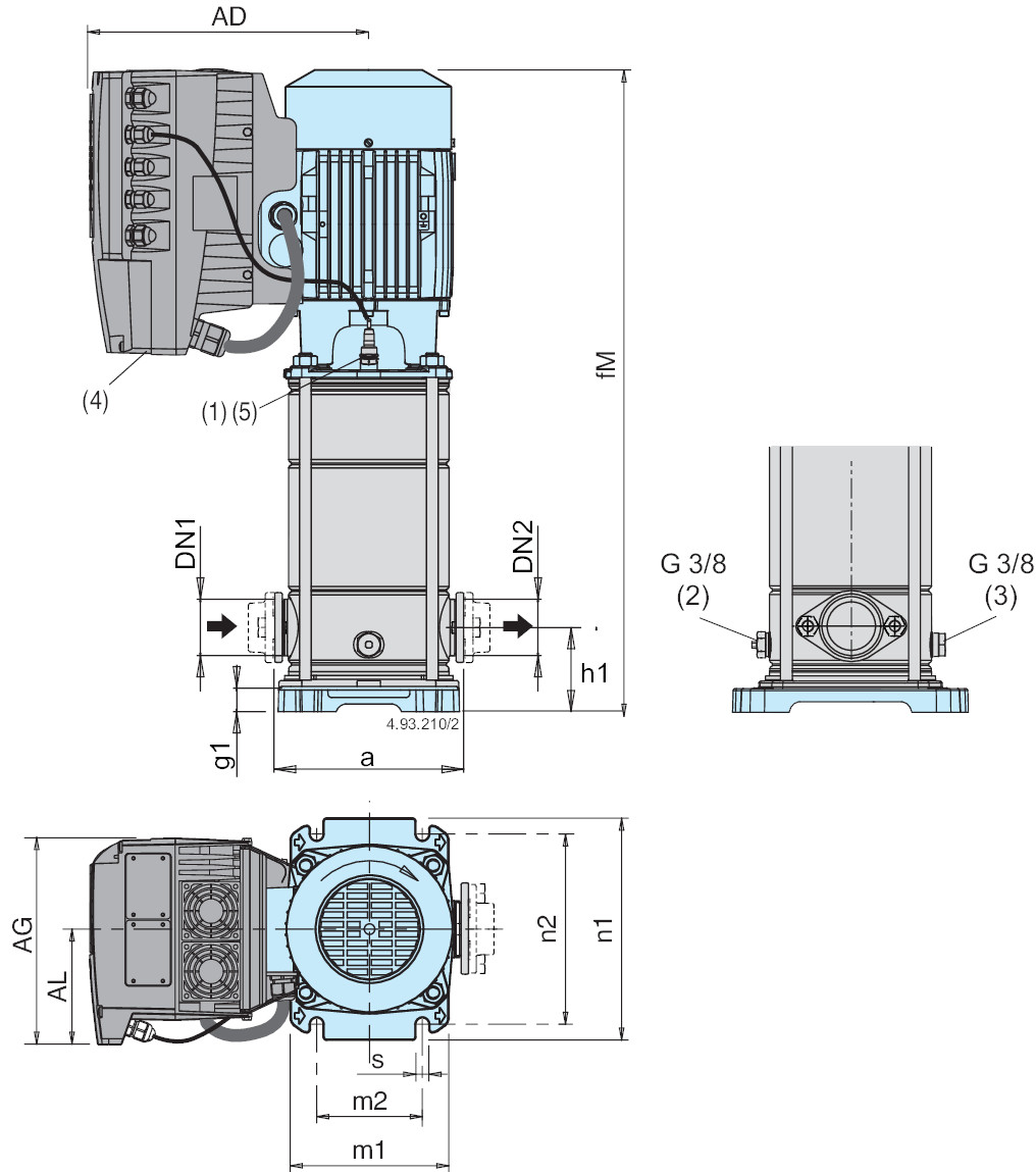 Pompe multistadio verticali monoblocco con bocche di aspirazione e mandata dello stesso diametro e disposte sullo stesso asse (in-line).Tutte le parti a contatto con il liquido, sono di acciaio inossidabile al cromo-nichel.